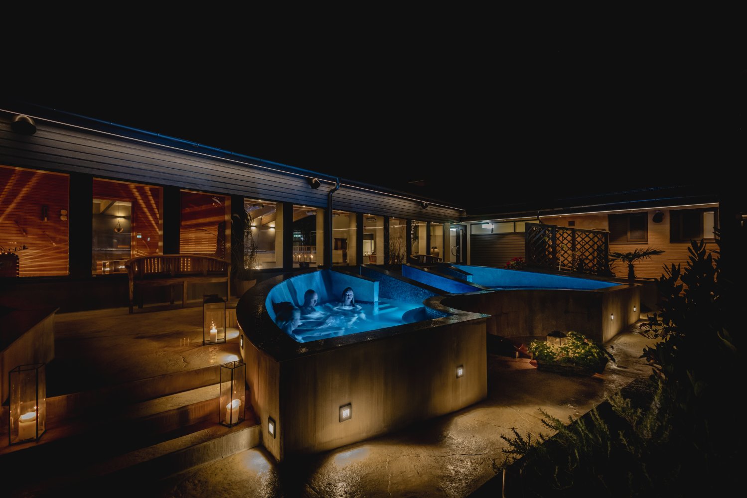 * Spa mit Bädern in verschiedenen Temperaturen, Sauna und Dampfbad, Fußbädern und heißen Bädern sowie einer kalten Quelle im Freien in unserem Atrium.