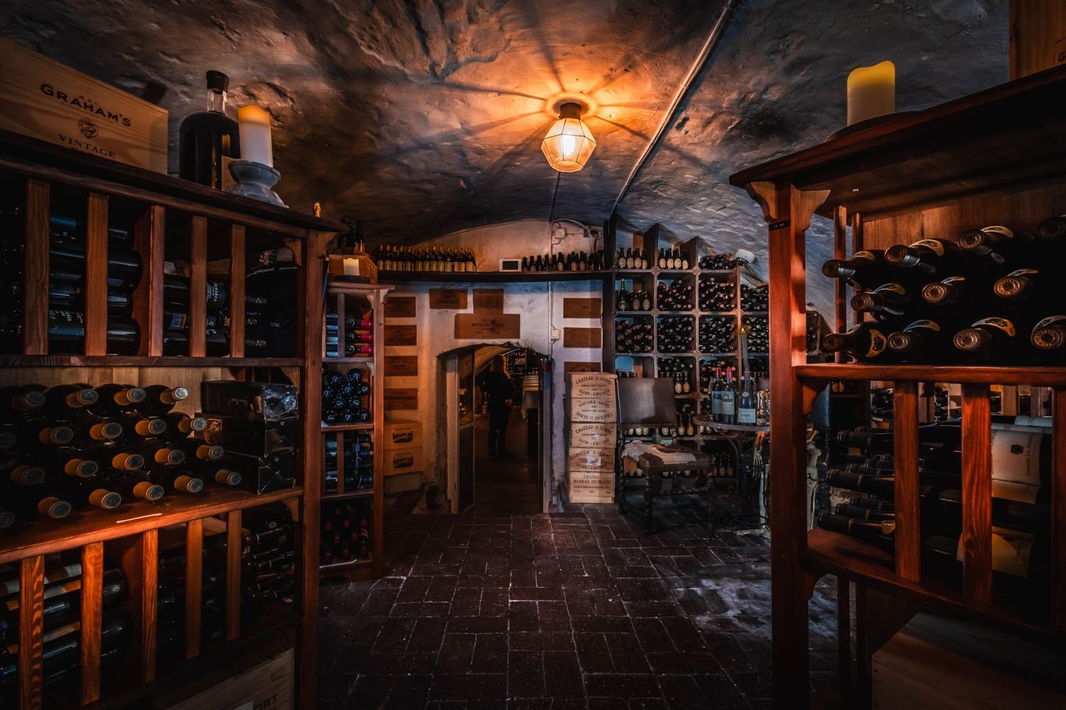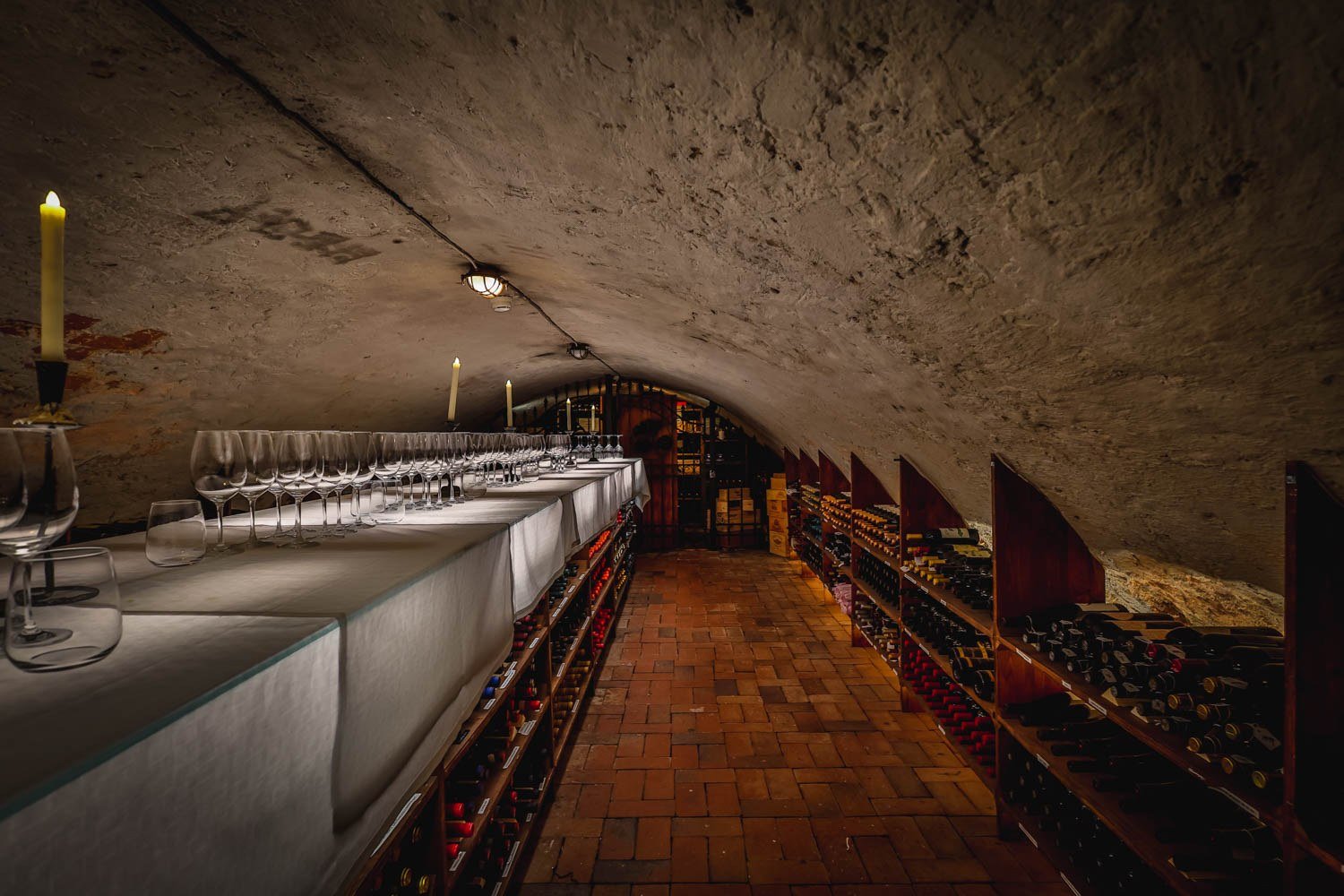 Die Mönche nutzten den Keller zur Lagerung von Bier, Wein und sogar Käse. Der Weinkeller besteht heute aus etwa 5.000 Flaschen, die in etwa 700 Sorten unterteilt sind, hauptsächlich aus Frankreich und den klassischen Weinregionen Bordeaux und Burgund. Natürlich haben wir auch Weine aus fast allen Teilen der Welt.
